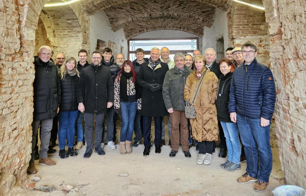 Falkenstein. Am Samstag, den 17.01.2026 begrüßte Falkensteins Bürgermeisterin Heike Fries unter anderem den Landtagsabgeordneten Gerhard Hopp und CSU-Landratskandidat Michael Multerer auf der Baustelle des Schröttinger Bräu. Gemeinsam mit dem Projektleiter Klaus Baumann, dem Investor Thomas Dietlmeier und einigen Gemeinderäten machten sie sich vor Ort ein Bild von den laufenden Umbaumaßnahmen.
