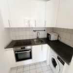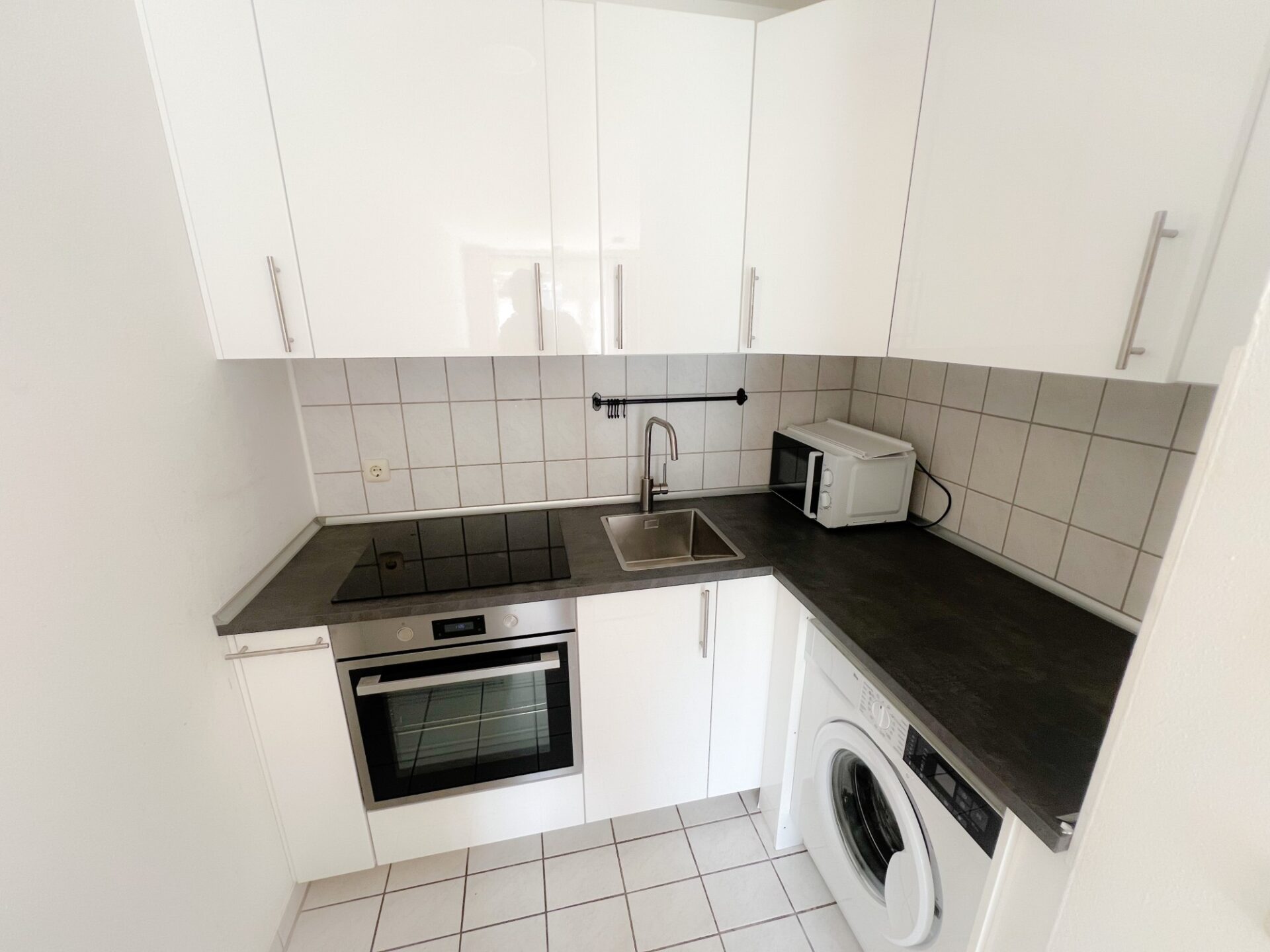 Die moderne Einbauküche, die im Preis enthalten ist, verfügt über hochwertige Geräte wie einen Backofen, ein Cerankochfeld, eine Kühl-Gefrierkombination und eine Waschmaschine, sodass Sie auf nichts verzichten müssen. Das hell geflieste Badezimmer ist mit einer praktischen Dusche ausgestattet und rundet das Angebot ab.