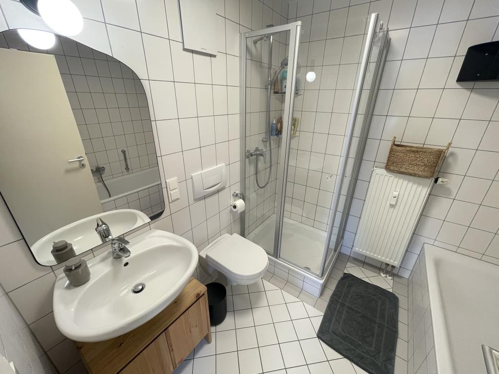 schafft. Das Badezimmer ist sowohl mit einer Dusche als auch einer Badewanne ausgestattet – ein echtes