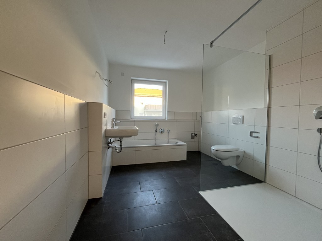 Das geflieste Badezimmer mit ca. 9,82 m² verfügt über ein WC, ein Waschbecken, einer Dusche und einer Badewanne.