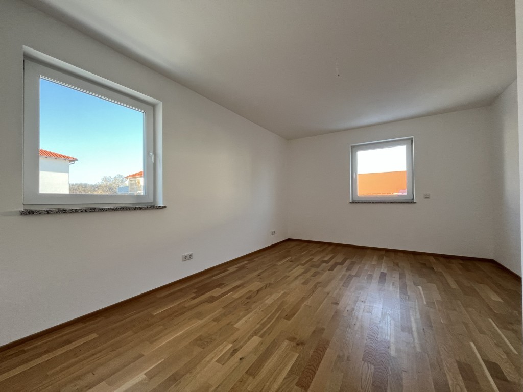 Das Kinderzimmer ist ebenso mit Parkettboden ausgestattet und eignet sich mit ca. 11,61 m² ideal für ein Bett, einen Schrank und einen Schreibtisch und kann alternativ auch als Büro oder Gästezimmer genutzt werden.