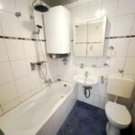 Ebenso der Zugang zum Badezimmer erfolgt über die Diele. Das Badezimmer ist dabei innenliegend und befindet sich in einem makellosen Zustand. Die Badewanne kann dank des Duschvorhanges dual genutzt werden. Neben der üblichen Sanitärausstattung befindet sich darüberhinaus der Anschluss für eine Single-Waschmaschine an dieser Stelle.