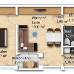 Die Zonierung der Wohnung bietet eine maximale Nutzbarkeit der Wohnfläche und schafft dank der Innenausstattung zugleich besten Wohnkomfort. Die Diele verfügt über einen großzügigen Einbauschrank, welcher neben der üblichen Nutzung als Garderobe weiteren Stauraum für Haushaltsutensilien o.ä. bietet.