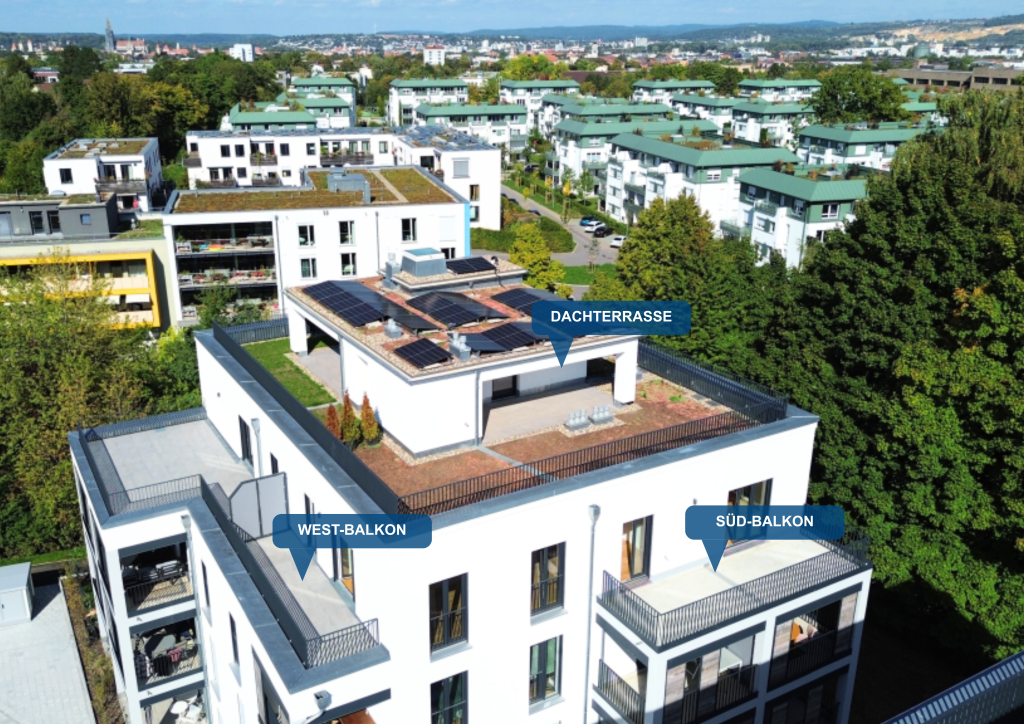 Am Galgenberg, umgeben von einer Parkfläche von ca. 3000 m², entsteht das Wohnquartier „VIVO 3“. Unter anderem steht hierbei die nachfolgend beschriebene Penthouse-Wohnung mit einmaligem Weitblick über Regensburg zum Verkauf zur Verfügung. Der einzigartige Ausblick von der großzügigen Dachterrasse ist nur eines der Highlights, welches die Wohnung zu einer Besonderheit machen.