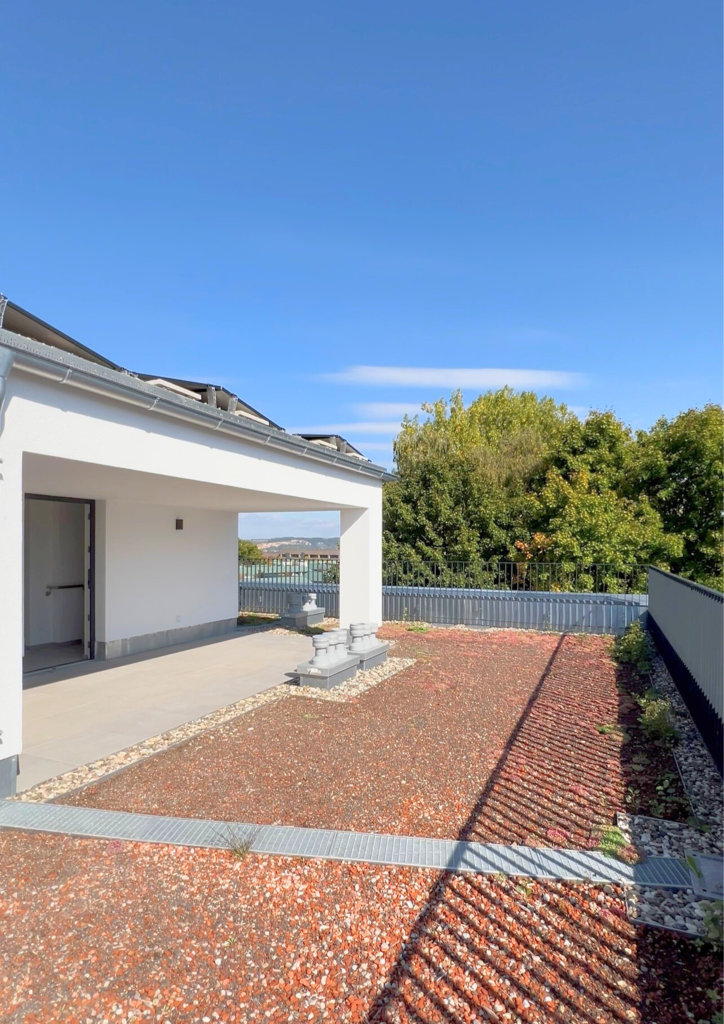 Das absolute Highlight dieser Penthouse-Wohnung befindet sich eine Etage höher: eine überdachte Dachterrasse mit beeindruckendem Weitblick über Regensburg. Hier besteht die Möglichkeit, eine Außenküche zu installieren, und ein praktischer Abstellraum sorgt für zusätzlichen Komfort. Über die interne Treppe oder den Aufzug, der direkt zur Dachterrasse führt, ist dieser exklusive Bereich jederzeit bequem erreichbar – perfekt, um Gäste stilvoll zu empfangen.