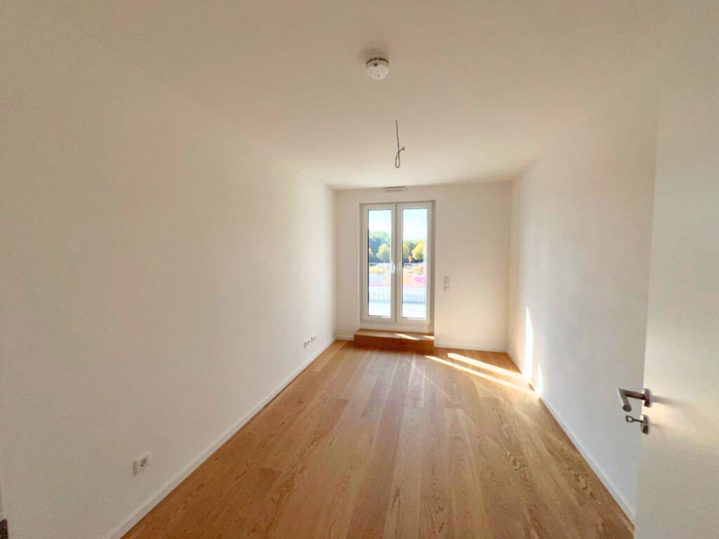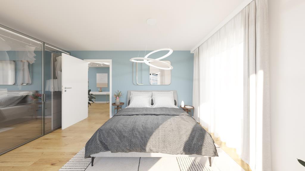 Das Master-Schlafzimmer mit ca. 15 m² Fläche rundet die private Ruhezone der Wohnung ab. Dank der Ost-Ausrichtung genießen Sie bereits am Morgen die ersten Sonnenstrahlen. Zudem verfügt das Schlafzimmer über einen direkten Zugang zur Süd-Terrasse, die zu entspannten Stunden im Freien einlädt.