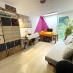 Das Dachgeschoss wurde als Studio gestaltet und kann ideal als Büro bzw. Home-Office genutzt werden. Durch das Dachflächenfenster und dem gegenüberliegenden Fenster kommt viel natürliches Licht in den Raum und gibt einem, in Verbindung mit der Holzdecke, eine gemütliche Atmosphäre. In diesem privaten Bereich finden Sie auch eine kleine Teeküche sowie einen praktischen Abstellraum. Durch die Größe von ca. 26,50 m² besteht auch die Möglichkeit eine Couch zu platzieren und dem stressigen Alltag zu entkommen. Alternativ besteht auch die Möglichkeit die Fläche in zwei abgetrennte Räume aufzuteilen.