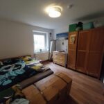 Das Schlafzimmer der Wohnung beläuft sich auf eine Zimmergröße von ca. 14,28 m² und ist mit Laminatboden ausgestattet. Dank des Raumschnittes finden ein 3 Meter breiter Kleiderschrank mit viel Stauraum und ein Doppelbett zusammen leicht Platz.