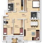 Auch die beiden Kinderzimmer mit jeweils ca. 11,22 m² profitieren von einem Fenster in Richtung des Balkons und sind demnach sehr gut belichtet. Das Elternschlafzimmer mit ca. 16 m² hat die ideale Größe und den Raumsschnitt für die Platzierung eines 1,80 m breiten Doppelbettes und ist aufgrund eines großen Fensters ebenso gut von Tageslicht verwöhnt. Die Wohnung verfügt über den Komfort eines Badezimmers mit Wanne und einem separaten WC; beides ist dabei innenliegend. Der Waschmaschinenanschluss befindet sich direkt in der Wohnung selbst im WC-Raum.