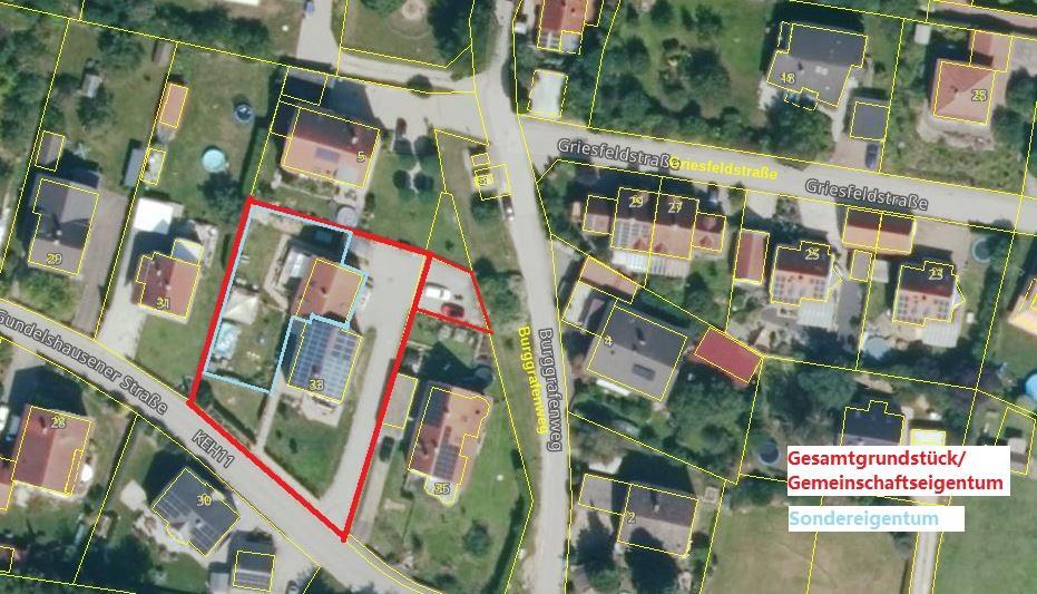 Der Wohnung ist ein abgeschlossener Kellerraum mit ca. 10 m² zugeteilt, außerdem gehören der Wohnung 2 Außenstellplätze an. Die Pellet-Zentralheizung versorgt die gesamte WEG, welche aus insgesamt drei Parteien besteht. Es ist zudem ein gemeinschaftlicher Wasch-/Trockenraum vorhanden, in welchem jede Partei seine eigenen Geräte platzieren kann und ein separater Zähler installiert ist. Das Gemeinschaftseigentum wird derzeit verwaltet von der Hausverwaltung Sedlmaier, Kelheim.