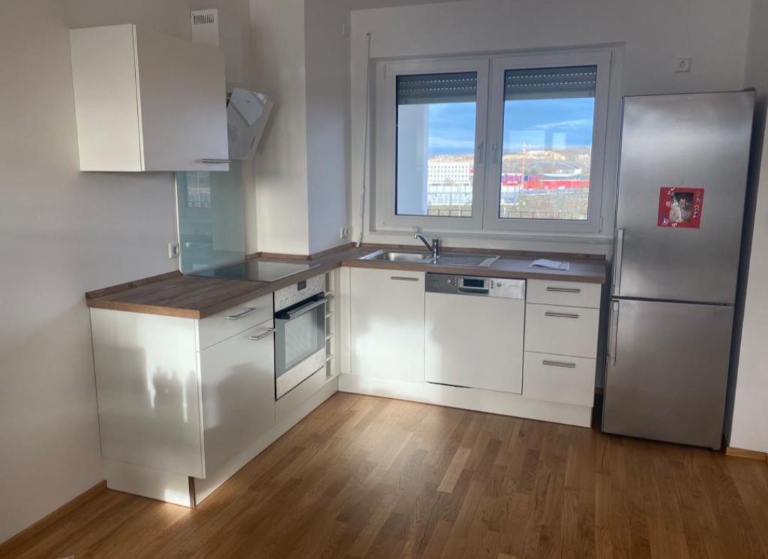 Moderne, barrierefreie 2-Zimmer-Wohnung mit Balkon und Aufzug. Hochwertige Ausstattung mit Parkett, Fußbodenheizung und großformatigen Fliesen. Energieausweis vorhanden. Einbauküche kann vom Vormieter abgelöst werden.