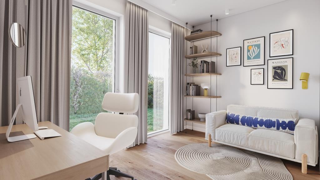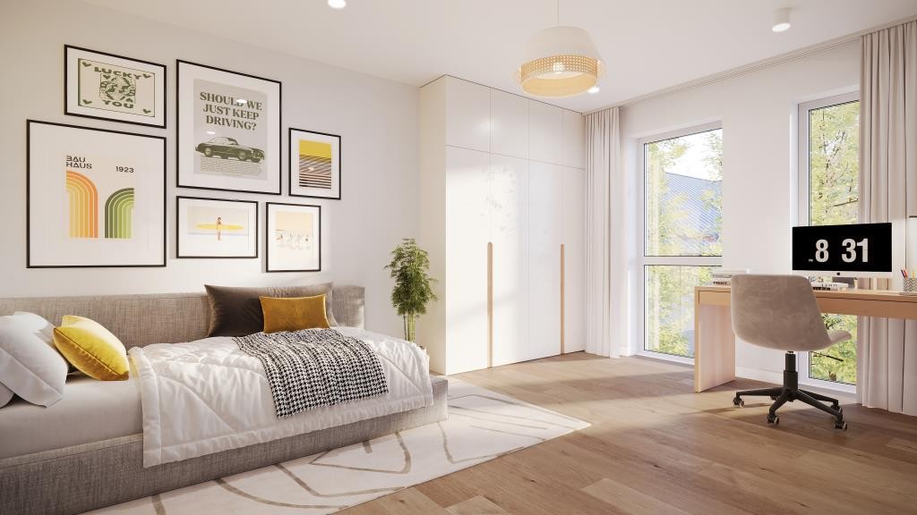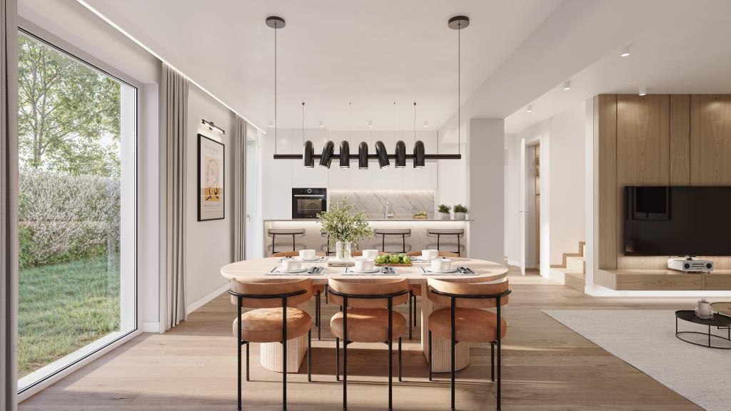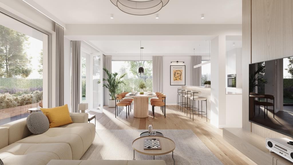 Absolutes Highlight ist ein über 40 m² großes Wohnen/ Essen/ Kochen mit direktem Zugang zur nach Süden ausgerichteten Gartenterrasse samt Garten. Wer sich viel Platz, Licht und Freiheit wünscht, wird sich hier rundum wohlfühlen. Zudem wird die Gartenterrasse mit Garten spätestens mit den ersten Sonnenstrahlen im Frühling zu einem zweiten „Wohnzimmer“ für die Familie. Abgerundet wird das Erdgeschoss mit einem großzügigen Gästezimmer/ Home-Office, einem separaten WC, einer Diele mit Platz für eine geräumige Garderobe und einen Raum für die Haustechnik.