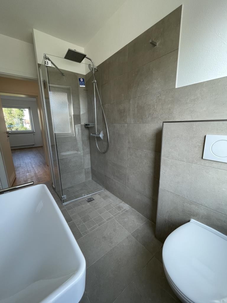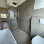– Wohnungen 1 + 2: Kernsanierung erfolgte in Form von Leitungserneuerung (Elektro- und Heizungsleitung), Austausch des Bodenbelags zu Vinylboden in Eichenoptik, neue Türen, Sanierung des Badezimmers mit modernen Fliesen im Format 30×60 cm in der Farbe greige, hochwertige Armaturen, eine bodengleichen Dusche mit Glaskabine sowie eine Handtuchheizkörper, neuwertige Einbauküche mit stylischen Fronten in der Farbe weiß