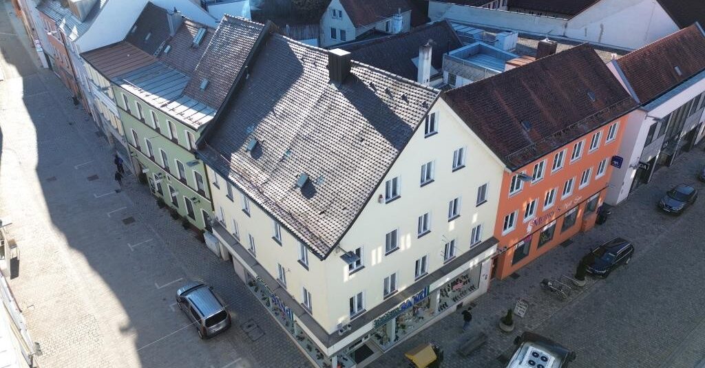 Das Wohn-/Geschäftshaus liegt in 1A Lage in der Bruckstraße als Erweiterung des zentralen Marienplatzes, dem Hauptplatz der Dingolfinger Altstadt. Das Gebäude fügt sich dank seines Ursprungsbaujahres 1839 dem historischen Stadtbild ideal ein und präsentiert sich dabei als modernisierter Altbau. Mit einer großzügigen Geschäftseinheit über zwei Etagen im EG und 1.OG mit ca. 378 m², einer zusätzlichen Lagerfläche von ca. 178 m² sowie einer Wohneinheit im 2.OG mit ca. 124 m² bietet das Haus einen ideal Mix aus Gewerbe und Wohnen.