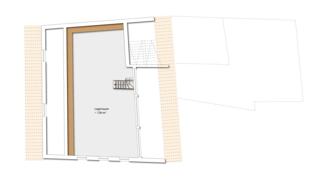 Vollständig wird das Hauptgebäude mit dem teilweise ausgebauten Dachboden mit ca. 136 m², welcher derweilen als Lagerraum dient und nach Umbau ebenso als weitere Wohnung genutzt werden kann.