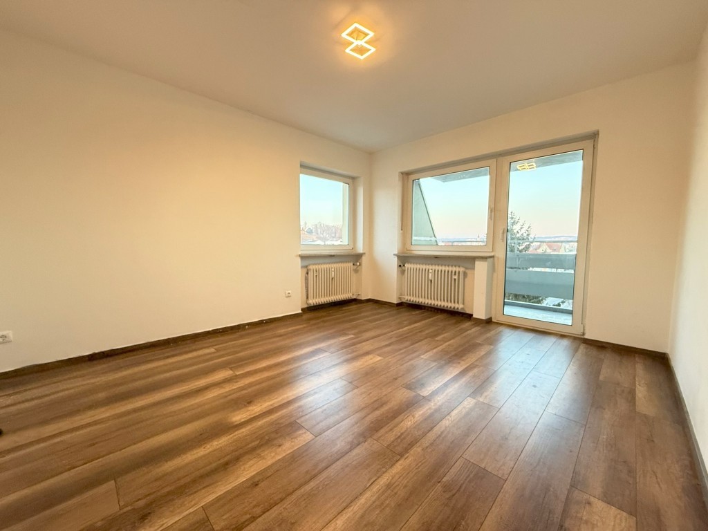 Der großzügige Wohnbereich mit ca. 21 m² bildet das Herzstück der Wohnung und bietet direkten Zugang zu einem der beiden Balkone. Die Räume sind mit Laminatboden ausgestattet, der für eine moderne Optik und ein wohnliches Gefühl sorgt. Für viel Tageslicht und eine gute Energieeffizienz sorgen zweifach verglaste Kunststofffenster. Beheizt wird die Wohnung über eine Öl-Zentralheizung, die Wärmeversorgung erfolgt über Heizkörper.