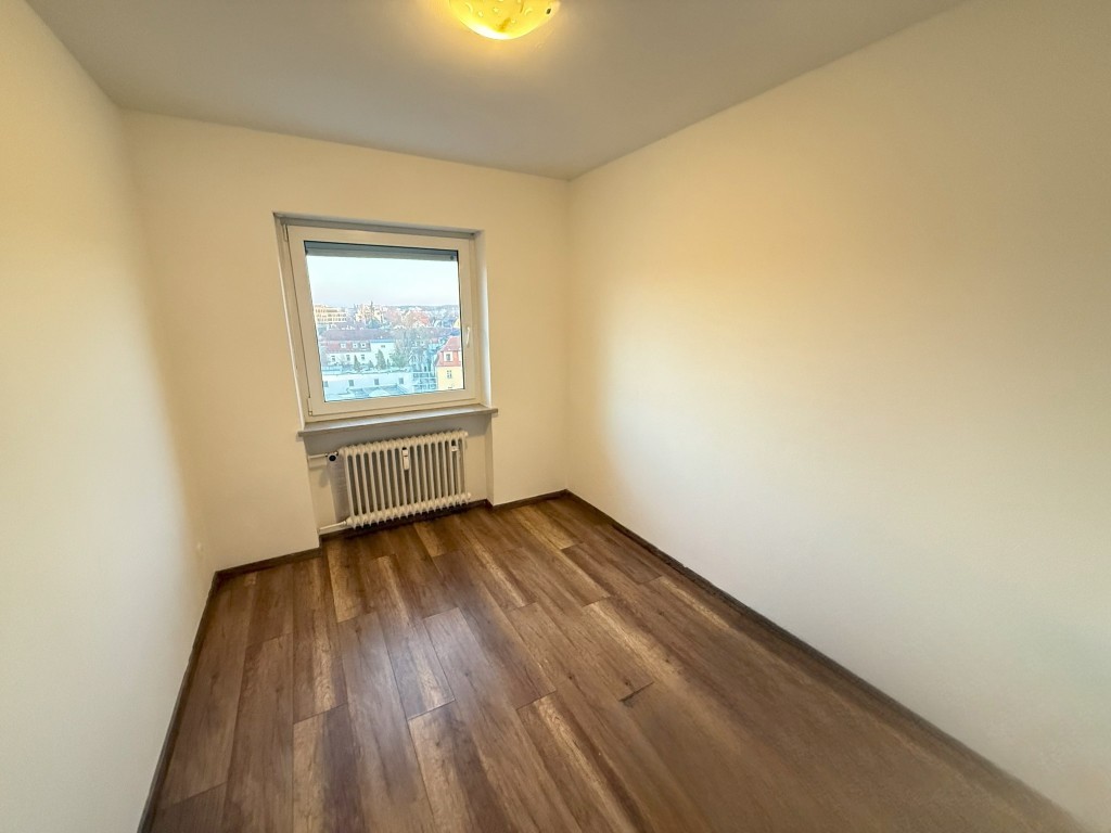 Das 15,33 m² große Schlafzimmer bietet eine angenehme Raumgröße und eine schöne Aussicht auf die Dreifaltigkeitskirche. Der Raum ist gut geschnitten und ermöglicht die komfortable Einrichtung mit einem Doppelbett, einem großzügigen Kleiderschrank sowie einem Schreibtisch- optimal geeignet für Homeoffice.