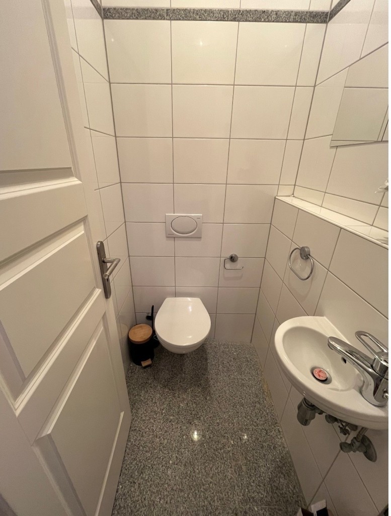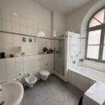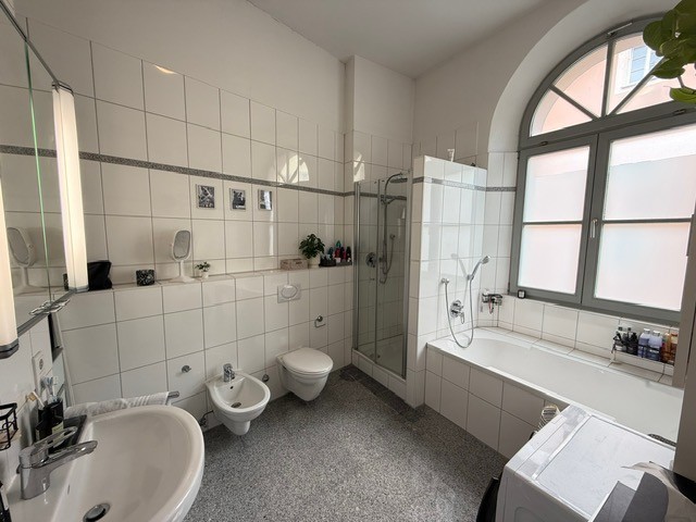 Das Badezimmer mit ca 9,35 m² bietet eine angenehme Größe und verfügt über eine Dusche, WC, einer Badewanne, einem Bidet und verfügt über einen Waschmaschinenanschluss. Ergänzt wird das Badezimmer durch ein weiteres separates WC, welches sich optimal als Gäste-WC eignet.
