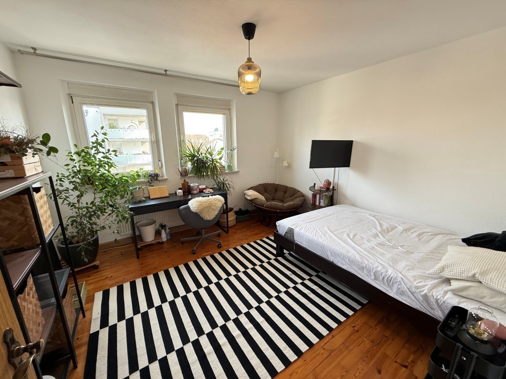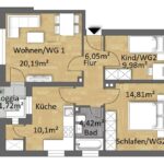 Das gut geschnittene Schlafzimmer mit ca. 14,81 m² bietet ausreichend Platz für ein großes Bett und einen geräumigen Kleiderschrank. Ein weiteres Zimmer mit ca. 9,98 m² kann flexibel als Kinderzimmer, Gästezimmer oder Homeoffice genutzt werden und passt sich somit verschiedenen Wohnkonzepten optimal an.