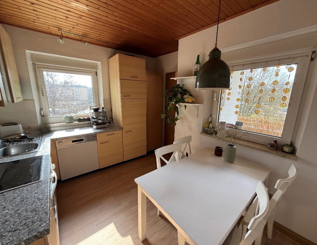 Die separate Küche mit ca. 10,1 m² bietet genügend Raum für eine funktionale Küchenzeile und praktische Arbeitsflächen. Ein angrenzender Abstellraum sorgt für zusätzlichen Stauraum und schafft ideale Aufbewahrungsmöglichkeiten für Vorräte und Haushaltsgeräte.