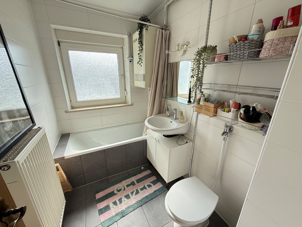 Das Badezimmer mit ca. 4,42 m² ist modern gefliest und funktional ausgestattet. Die zeitlose Gestaltung sorgt für ein gepflegtes und angenehmes Erscheinungsbild.
