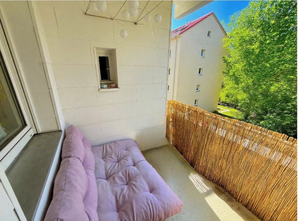 Ein besonderes Highlight der Wohnung ist die Loggia, die den Wohnraum ins Freie erweitert. Mit ihrem schönen Blick ins Grüne schafft sie einen ruhigen Rückzugsort und lädt dazu ein, entspannte Stunden an der frischen Luft zu genießen – sei es beim Frühstück am Morgen oder bei einem gemütlichen Ausklang des Tages.